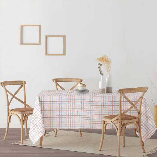 Mantel resinado antimanchas 220-4. Mantel confeccionado con tecnología antimanchas, cuenta con dos capas de resina y una de teflón que le proporciona un tacto suave y no plastificado. Aunque incorpora propiedades impermeables, mantiene una flexibilidad que evita que se vuelva completamente rígido. Este mantel es 100% algodón orgánico, lo que lo hace aún más atractivo y respetuoso con el medio ambiente. Además, es versátil y adecuado para uso en exteriores, lo que lo convierte en la elección perfecta para todo tipo de mesas, ya sean cuadradas, rectangulares u ovaladas. Elige el que mejor se adapte a tus necesidades.. Medidas: 200×140 cm. Composición: 100% algodón orgánico. Tejido: Algodón. Consejos: Se limpia fácilmente con una bayeta húmeda gracias al acabado antimanchas, y queda listo para el siguiente uso. (Las manchas deben limpiarse al momento) También puede lavarse a máquina, a 30º. Planchar por detrás, ayuda a potenciar el acabado antimanchas. Secado al aire. No secar con secadora. Lavado: Se limpia fácilmente con una bayeta húmeda gracias al acabado antimanchas, y queda listo para el siguiente uso. (Las manchas deben limpiarse al momento) También puede lavarse a máquina, a 30º. . Planchado: Planchar por detrás, ayuda a potenciar el acabado antimanchas. . Secado: Secado al aire. No secar con secadora