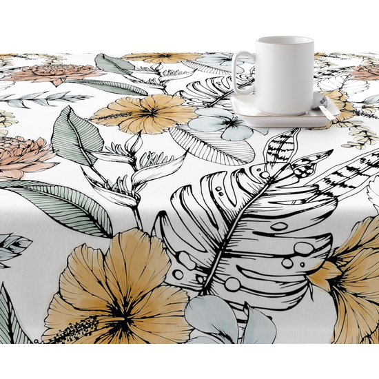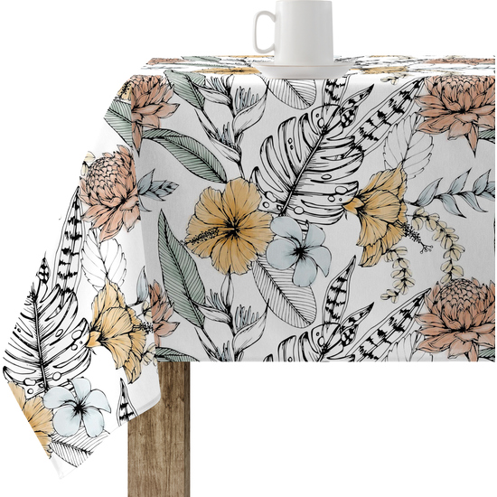 Mantel resinado antimanchas modelo 0120-190  Categoría: Nueva colección algodón  Calidad: Tejido 100% algodón resinado antimanchas (tacto plastificado).  Mantel confeccionado antimanchas