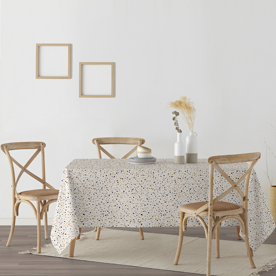 Mantel confeccionado antimanchas, con dos capas de resina y una de teflón, lo que le aporta un tacto plastificado, pero no hace que el mantel se quede completamente rijido. Al ser un mantel impermeable podemos usarlo también para el exterior. Para todo tipo de mesas, cuadradas, rectangulares, ovaladas, escoje el que mejor encaje a tus necesitades.