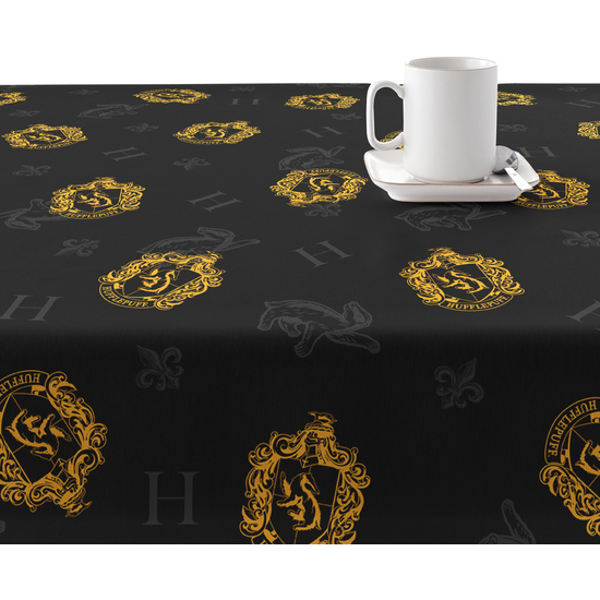 Mantel resinado (tacto plastificado) antimanchas modelo Hufflepuff Shield Black