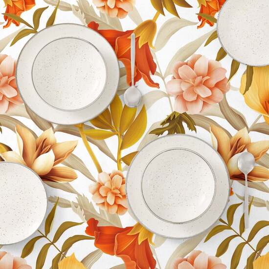 Mantel tacto tela 0120-384. Mantel estampado en 100% algodón, lo que garantiza suavidad, durabilidad y facilidad de cuidado. El algodón es una opción natural y ecoamigable, cómodo al tacto y perfecto para el uso diario.