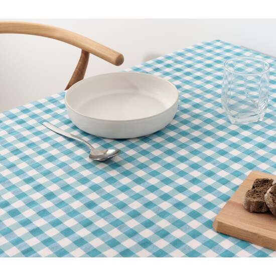 Mantel vichy cuadros Azul Claro tacto tela 250×140 cm